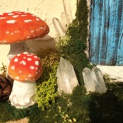 様々な粘土を使い分けて造形しベニテングタケも手作りです。