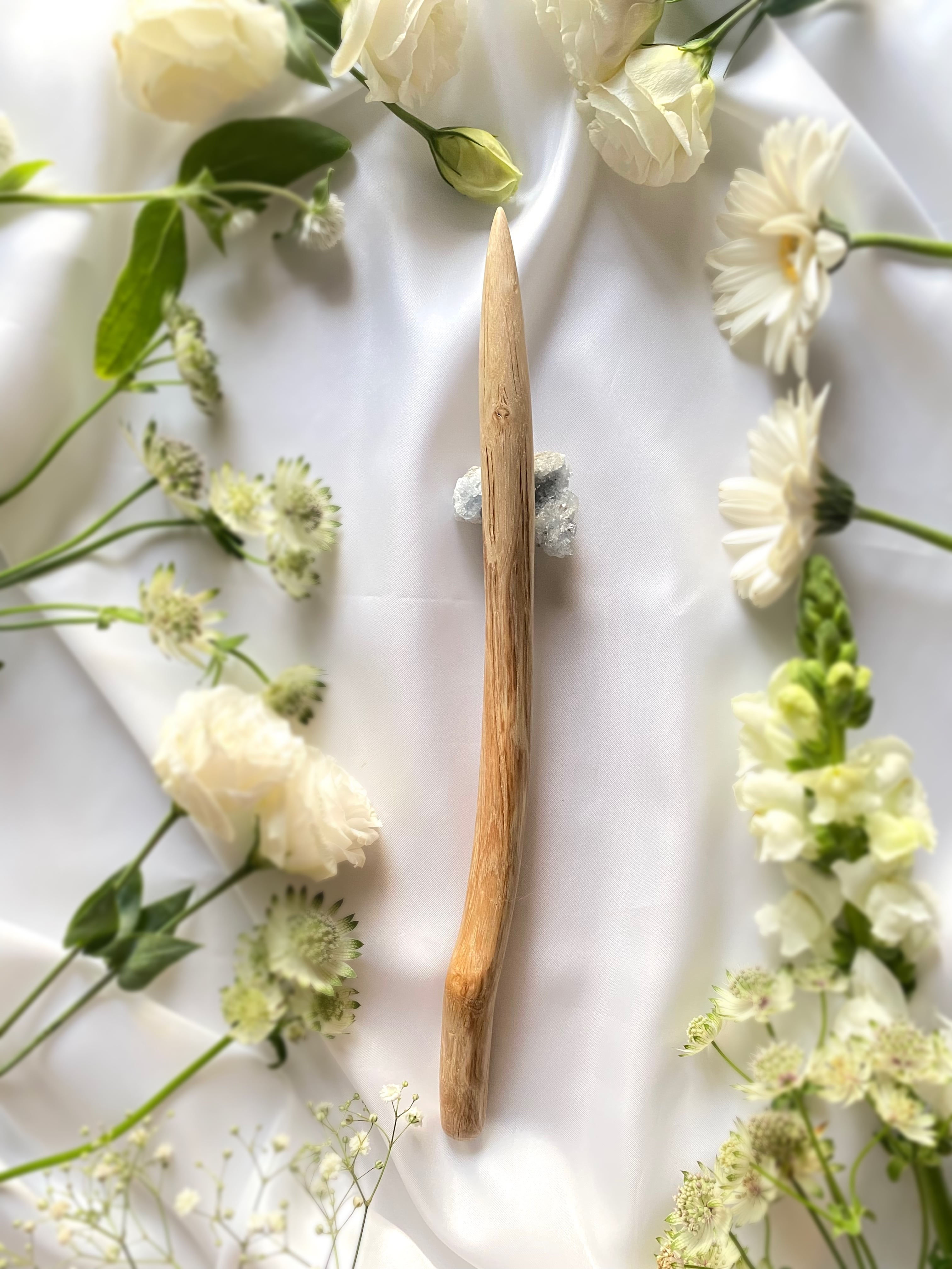 魔法の杖のウッドワンドは完成後に精油を塗り、満月のリズムに合わせ、ケルティック・アースウィズダムに則った古代ケルトの儀式で浄化、エネルギーチャージ、祝福の聖別をしています。