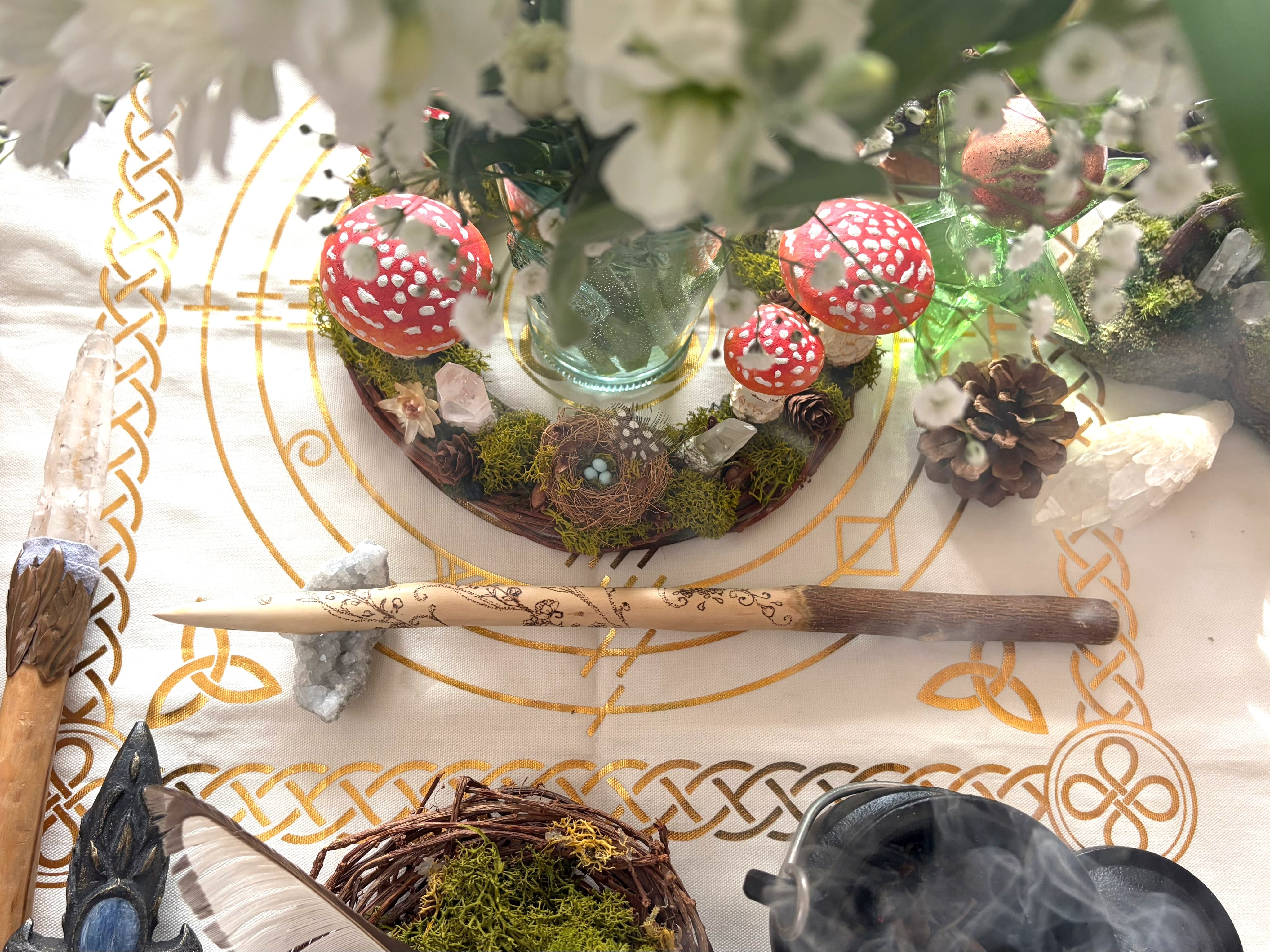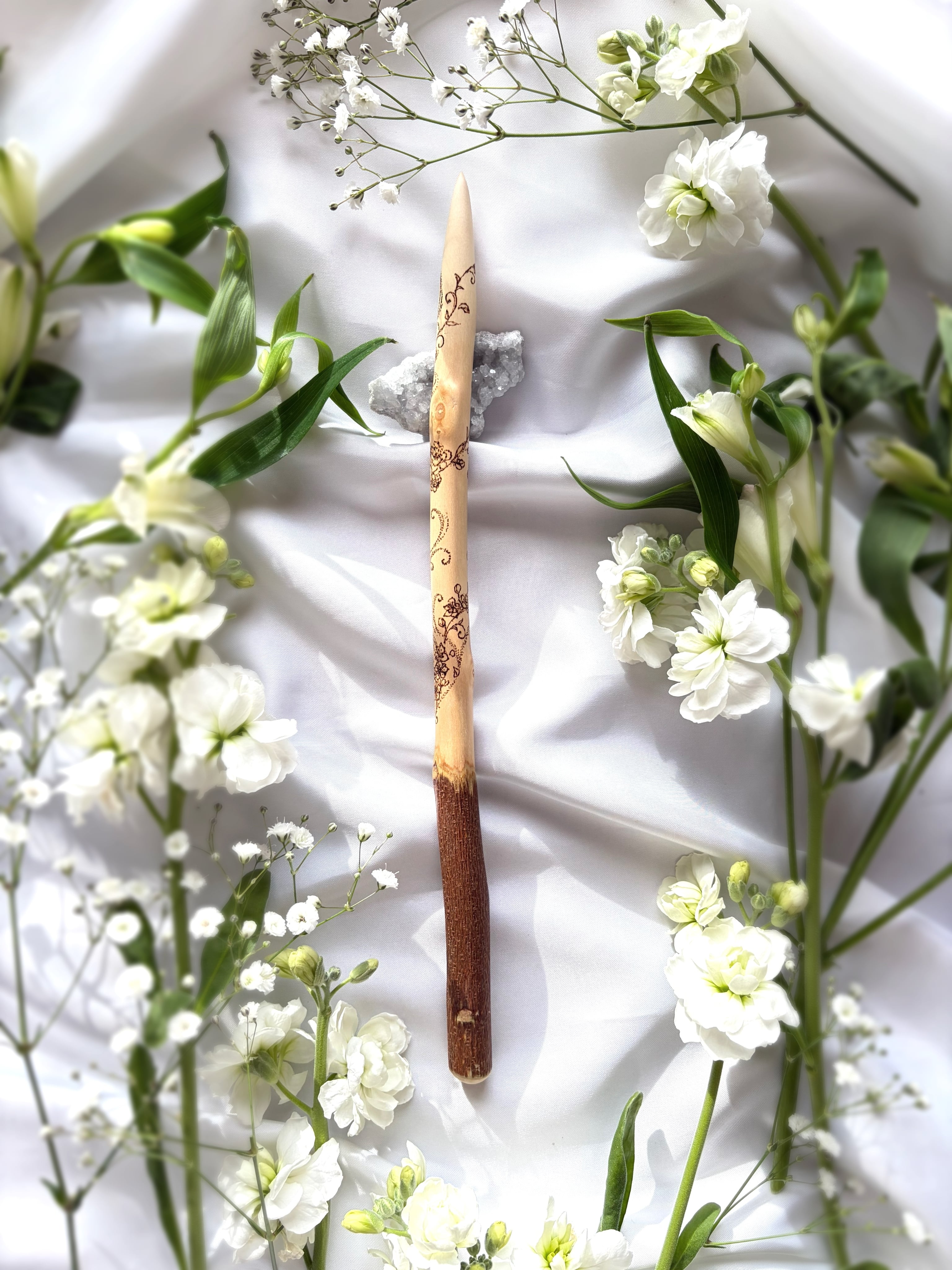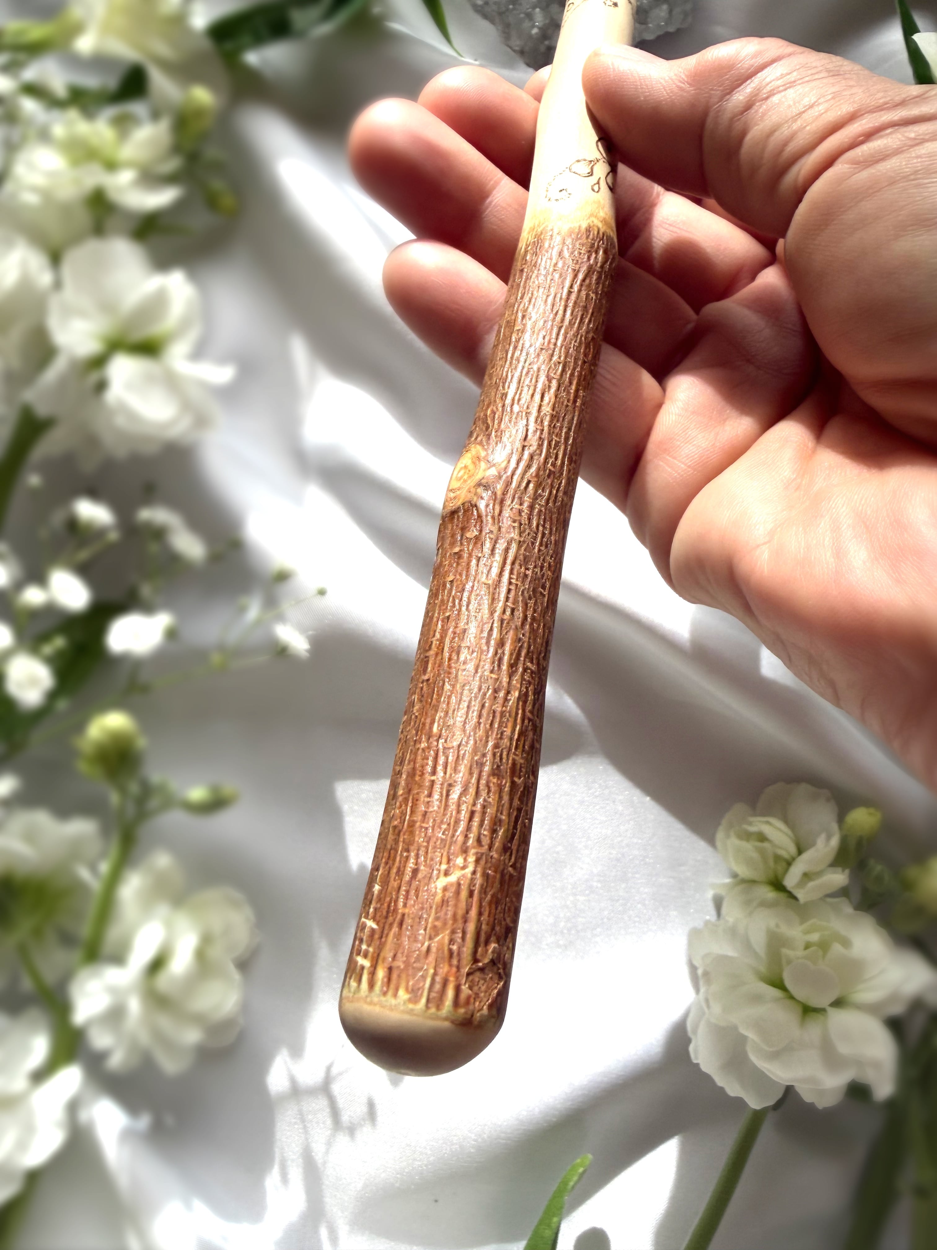 魔法の杖のウッドワンドは完成後に精油を塗り、満月のリズムに合わせ、ケルティック・アースウィズダムに則った古代ケルトの儀式で浄化、エネルギーチャージ、祝福の聖別をしています。
