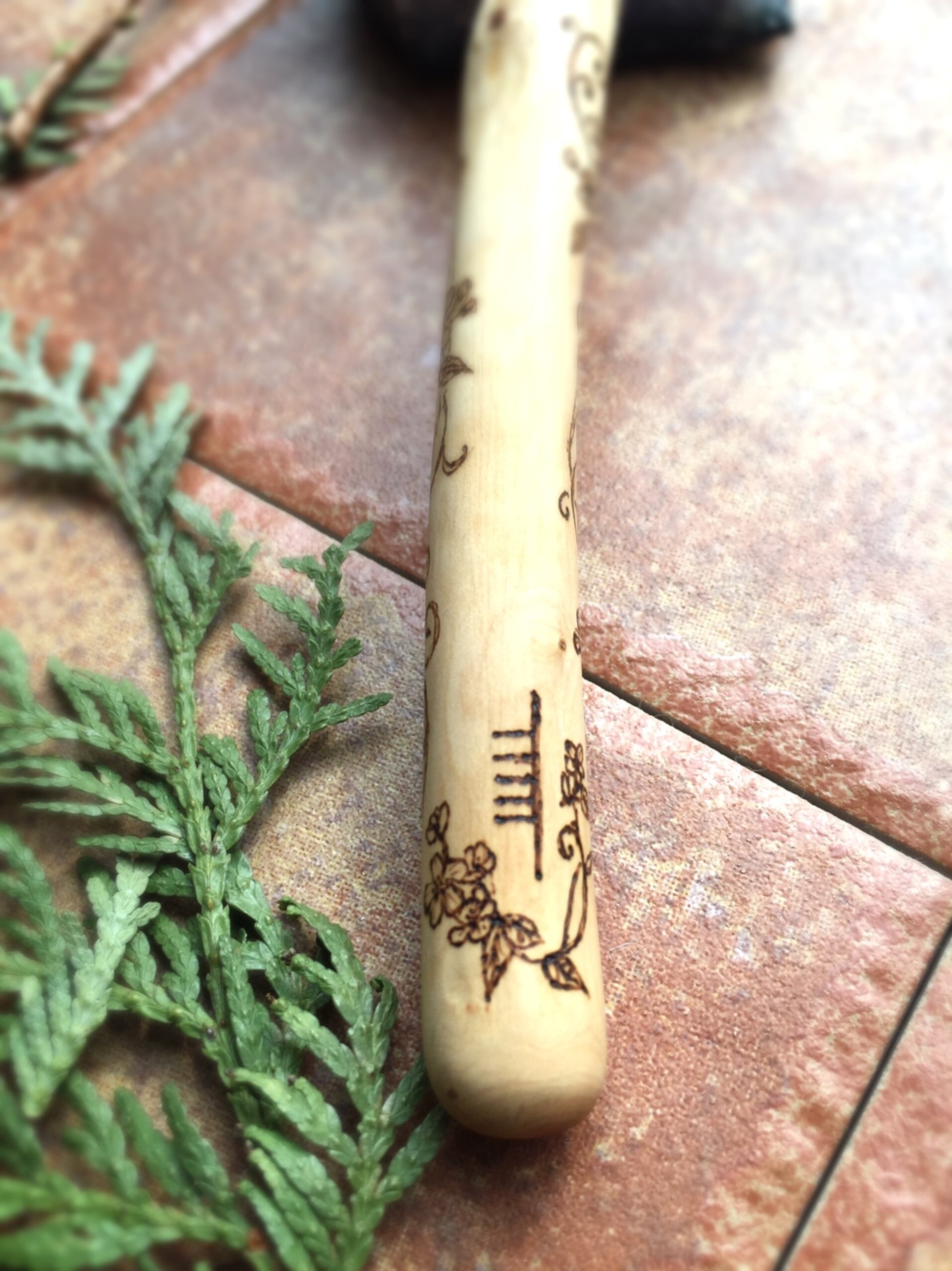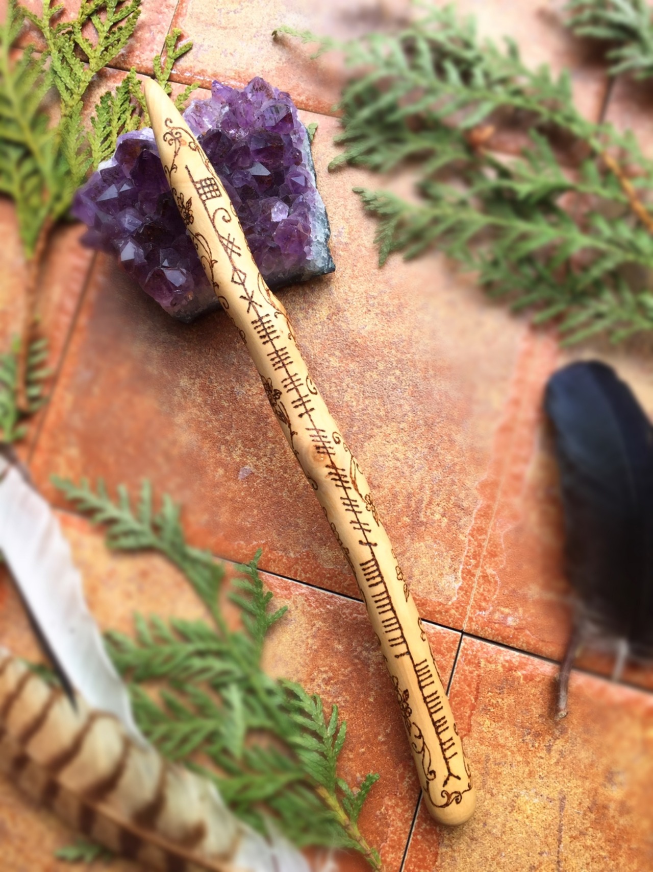 ワンドの表面に、古代ケルトのオガム文字の25文字を刻みました。
